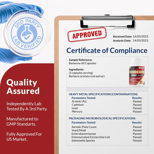 BEBEFEN Berberine HCL Supplement 2000mg - Boosts Immunity & Heart Health - Non GMO, Gluten Free - Supports Cardiovascular System