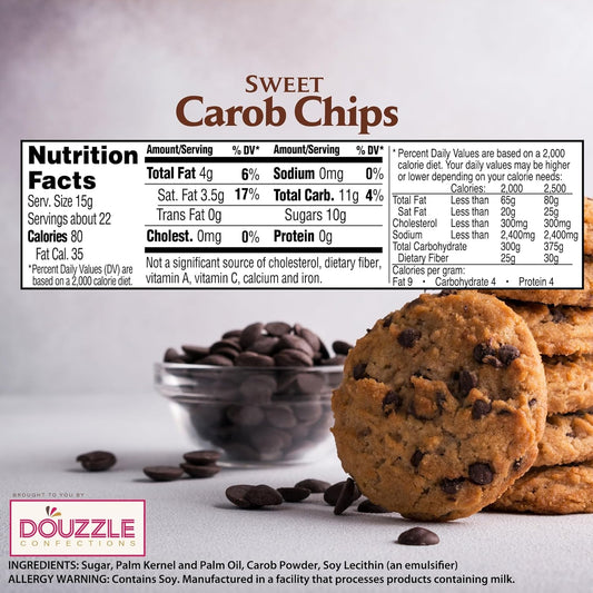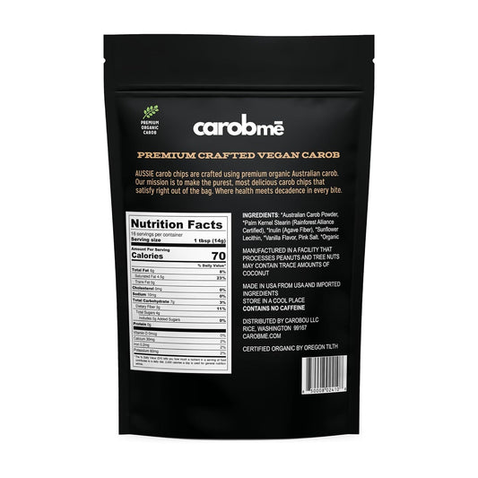 Organic Unsweetened Carob Chips 8 oz - Vegan Gluten-Free Chocolate Substitute for Baking and Snacks