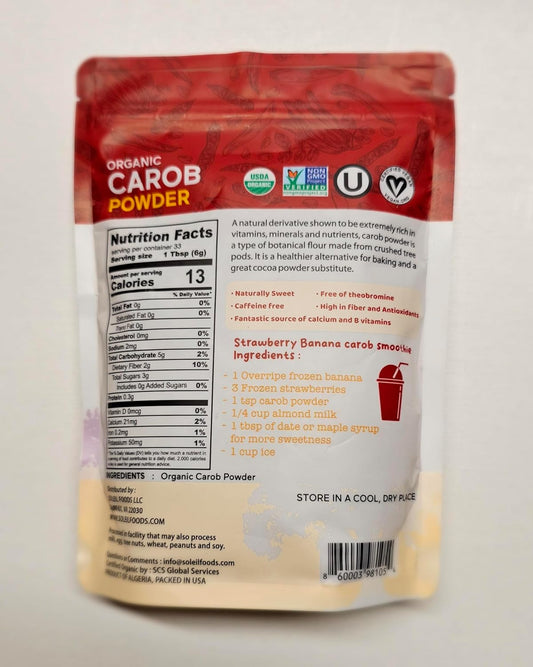 Organic Carob Powder by Soleil Foods - Vegan Superfood, High in Fiber, Caffeine-Free, Gluten-Free, Non-GMO, Kosher Certified (8.8oz)