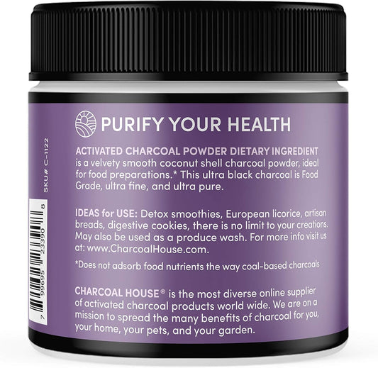 5oz Charcoal House ULTRA FINE Coconut Activated Charcoal Powder - for Culinary & Cosmetic Use - Smoothies, Ice Creams, Soaps - Soft Finish, No Grit