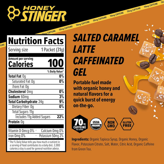 Organic Salted Caramel Energy Gel with Caffeine - Gluten Free Sports Nutrition for Exercise, Running, and Performance - 12 Pack, 13.2 oz