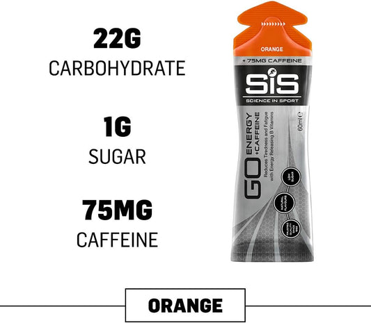 Science in Sport Energy Caffeine Gels - 6 Pack, 22g Carbohydrates, 75mg Caffeine, Orange Flavor - Fast-Acting Endurance Sport Energy