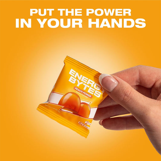 Vegan Peach Power Energy Gummies for Running, Cycling, Sports | Low Sugar Instant Energy Chews (12-Pack)