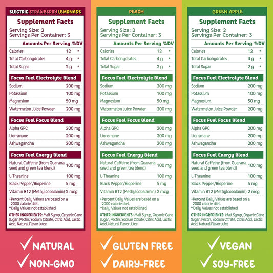 Energy-Boosting Caffeine Chews Variety Pack - 100mg Caffeine per 2 Gummies - Peach, Green Apple, Strawberry Lemonade Flavors - 18 Chews Total - FocusFuel Energy Gummies