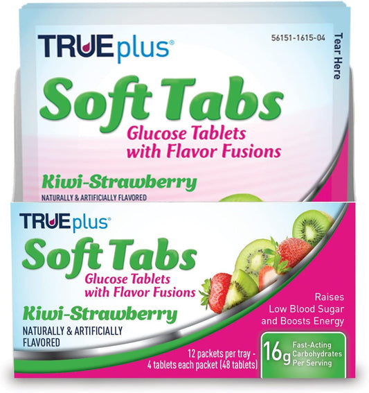 TRUEplus® Kiwi Strawberry Soft Tabs Glucose Tablets - 12 Packs, 48 Tabs