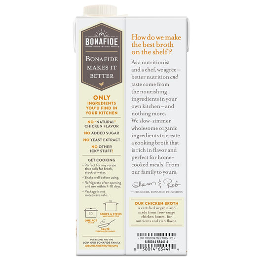 Organic Chicken Broth - No Salt Added, Shelf Stable 32 fl oz by Bonafide Provisions