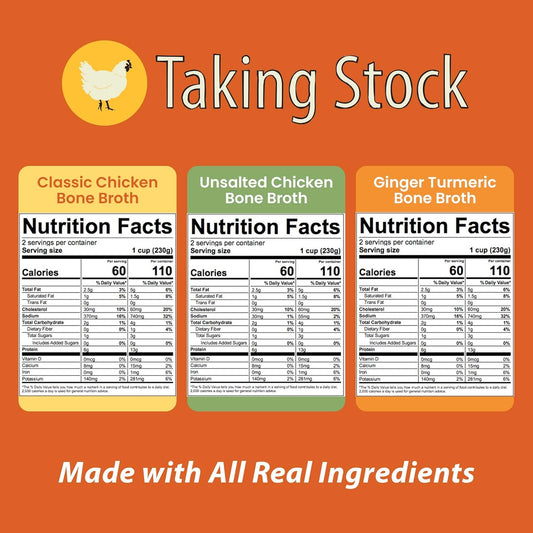 Organic Taking Stock® Chicken Bone Broth - Chef Crafted, High Protein, Low Calorie, 16 Oz, Pack of 3 - Gluten-Free & BPA Free