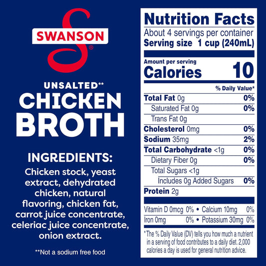 Swanson 100% Natural Unsalted Chicken Broth - 32 oz Carton - Premium Quality Bone Broth