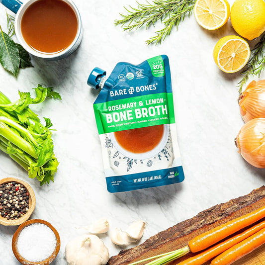 Organic Rosemary Lemon Chicken Bone Broth, 16 oz - Pack of 2, Protein & Collagen Rich, Keto-Friendly, Pasture Raised - Ideal for Cooking & Sipping