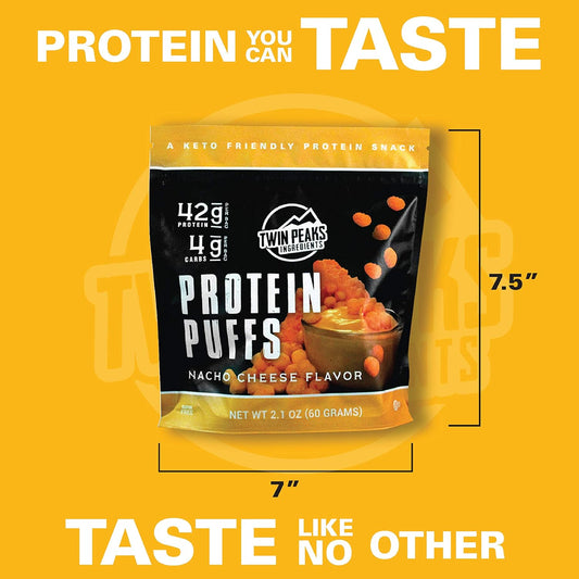 Twin Peaks Low Carb Nacho Cheese Protein Puffs - 3 Pack (60g, 42g Protein, 4g Carbs) - Keto Friendly Snack for 2 Servings