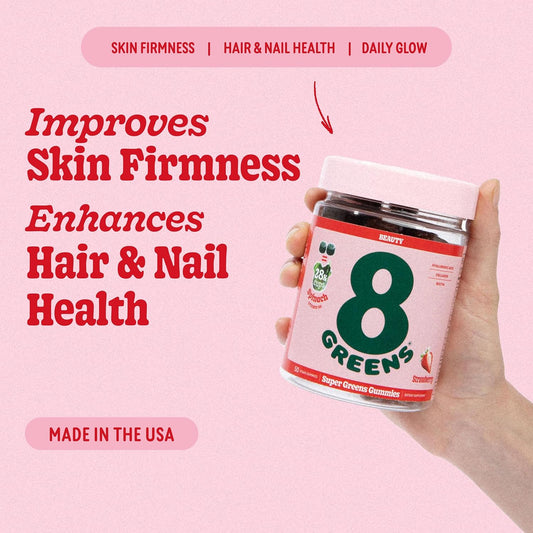 8Greens Beauty Gummies with Collagen & Biotin - Super Greens Powder Gummy for Skin, Hair, Nails - Superfood Booster - Strawberry Flavor - 150 Count