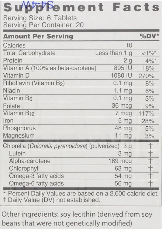 Organic Chlorella Tablets - Premium Quality Dietary Supplement with Vitamins, Minerals, & Antioxidants - 120 Tablets