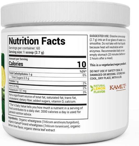 USDA Organic Dr. Berg's Raw Wheatgrass Juice Powder - Lemon Flavored with Stevia - Ultra-Concentrated - 60 Servings - Trace Minerals and Enzymes - 3 Pack