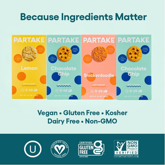 Partake Foods Vegan Cookies Variety Pack - 8 Boxes | Gluten-Free, Allergy-Friendly Snacks for Kids | No Peanuts, Soy, Dairy, Tree Nuts | Soft Baked & Crunchy Options | Safe for School
