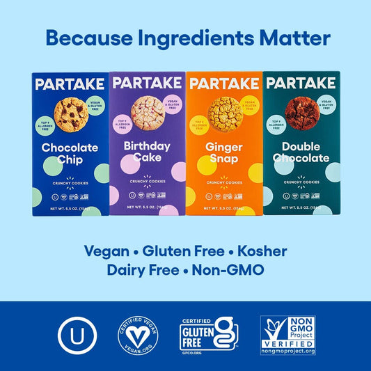 Partake Foods Crunchy Vegan Cookies Variety Pack - Gluten Free, Vegan, Nut-Free, School-Safe Snack (4 Boxes)