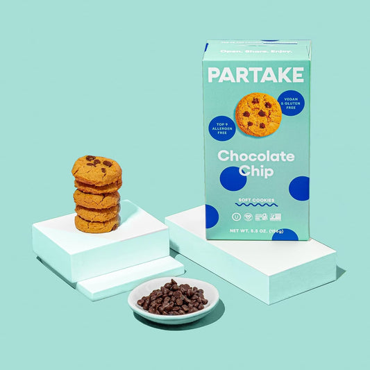 Partake Foods Vegan Soft Chocolate Chip Cookies (5.5oz, 6 Pack) | Gluten-Free Snacks | Nut-Free & Dairy-Free | School-Safe Treats by Partake