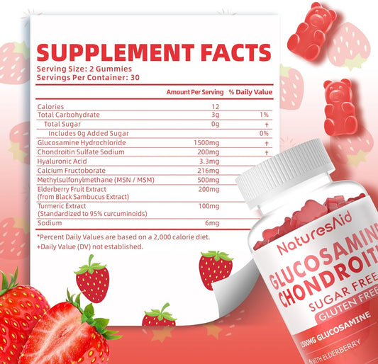 Extra Strength Glucosamine Chondroitin Gummies with MSM, Elderberry - Joint & Immune Support for Adults - Strawberry Flavor - 2 Pack