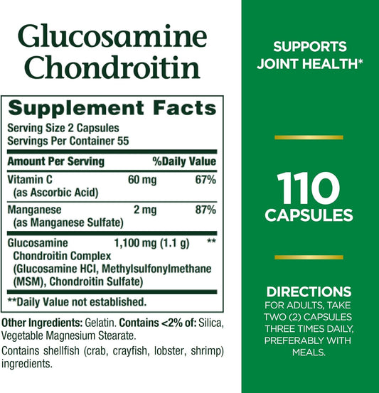 Glucosamine Chondroitin Dietary Supplement for Joint Health Support - 110 Capsules by Nature's Bounty