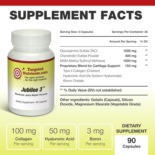 Joint Support Supplement with Glucosamine, Chondroitin, MSM, Collagen, Hyaluronic Acid, Boron - Triple Action for Mobility & Cartilage Health - 90 Capsules