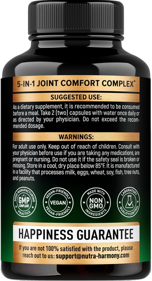 Glucosamine Chondroitin & Boswellia Extract Capsules by NUTRAHARMONY - Joint Support Supplement for Mobility and Flexibility