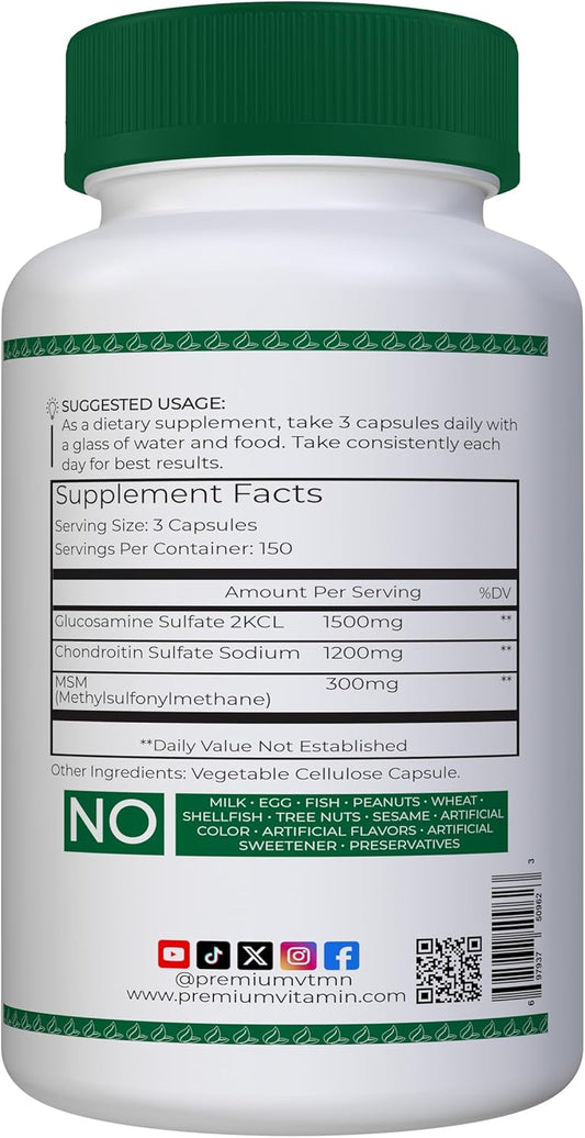 Glucosamine Chondroitin MSM Complex 3000mg | 5 Month Supply, 450 Capsules | Joint Support Supplement with Hair, Nail, Cartilage Benefits