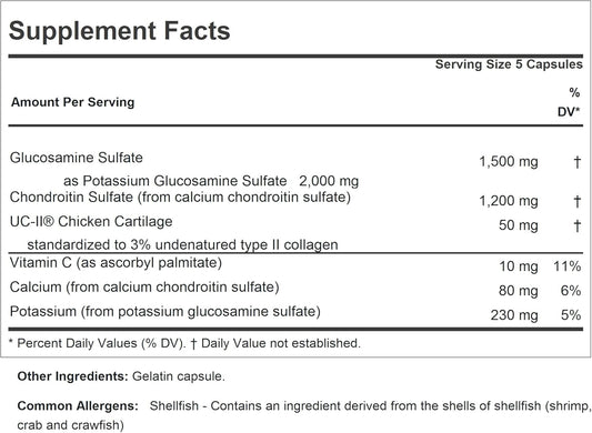 Glucosamine Chondroitin + UC-II Capsules - 150 Count - Supports Healthy Joint Tissue - Easy-to-Swallow Formula