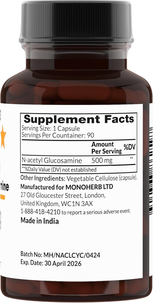 N-Acetyl Glucosamine 500mg Supplement - 90 Veg Capsules - Joint Health Support - 90 Servings