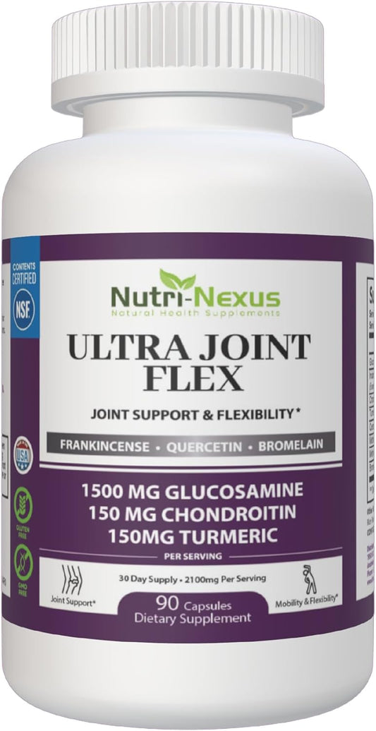 Ultra Joint Flex Supplement with Glucosamine, Chondroitin, Turmeric - Natural Joint Support for Mobility & Flexibility - Includes Frankincense, Quercetin, Bromelain - 90 Capsules