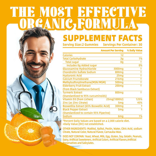 Extra Strength Glucosamine Chondroitin Gummies with MSM & Elderberry for Joint and Immune Support - 120 Orange Gummies for Men and Women by Bettervits Nutrition