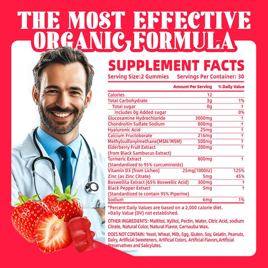 Extra Strength Glucosamine Chondroitin Gummies with MSM & Elderberry for Joint and Immune Support - 120 Strawberry Gummies for Adults