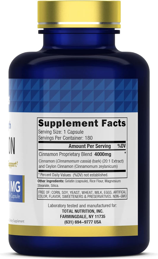 Extra Strength Ceylon & Cassia Cinnamon Capsules - 4000 MG | 180 Capsules of Cinnamon Bark Extract | Powerful Cinnamon Complex