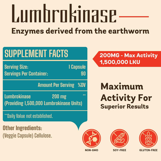200mg Pepeior Lumbrokinase Supplement with Max 1,500,000 LKU - Enzyme Capsules for Cardiovascular Health - 90 Capsules (2 Bottles)