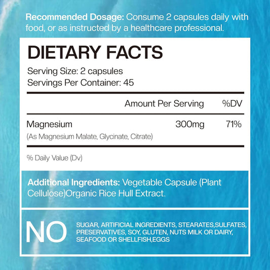 300mg Magnesium Capsules - Triple Complex Magnesium Supplement for Energy & Nerves - 90 Count Magnesium Glycinate, Citrate, & Malate Formula by VOLTZAP