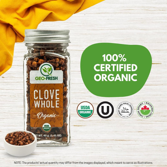 Geo-Fresh Organic Whole Cloves 1.41 oz - Non-GMO, Kosher, Gluten Free - USDA Certified Organic Cloves for Cooking and Baking