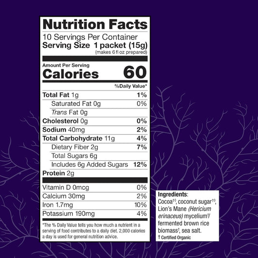 Host Defense MycoBrew Cocoa Superfood Powder Drink Mix with Lion's Mane Mushroom - 10 Packets, Made with Fair Trade Certified Cocoa