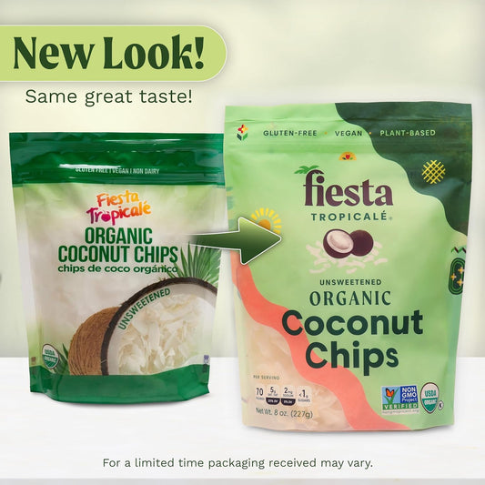 Organic Raw Unsweetened Coconut Flakes 8 Oz (Pack of 3) - Gluten-Free Shredded Coconut for Vegan Baking, Smoothies, Keto Recipes - Fiesta Tropicalé