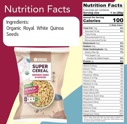 Organic Vegan Gluten-Free Cereal Snack 6oz - Non-GMO Kosher Puffed Quinoa - Diabetic-Friendly & Sugar-Free Option