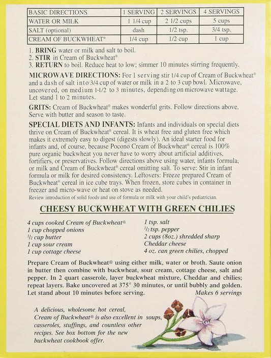 USDA Certified Organic Pocono Cream of Buckwheat - Pack of 6 - Heart-Healthy Superfood
