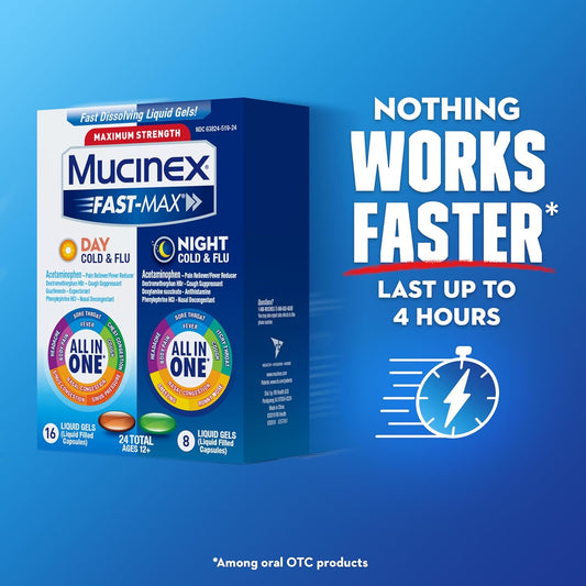Mucinex Fast-Max Day/Night Cold & Flu Medicine Combo Pack for Adults - Fever, Sore Throat Relief, Decongestant, 24 Liquid Gels