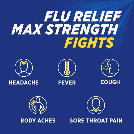 Max Strength Daytime Flu Medicine for Symptom Relief - 6 Powder Packets with Acetaminophen, Dextromethorphan HBr, Honey Lemon Flavor