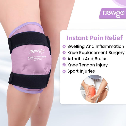 Reusable Gel Ice Pack Knee Wrap for Knee Injuries, Swelling - Purple - Ideal for Meniscus Tear, ACL, Knee Replacement Surgery - NEWGO
