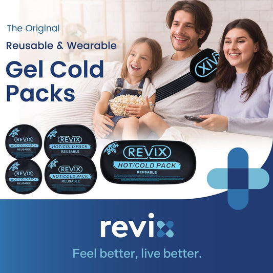 REVIX 5-Piece Reusable Ice Packs for Injuries - Hot & Cold Gel Pack for Muscle & Joint Recovery - Adjustable Cooling Pads for Knees, Back, Arms, Neck