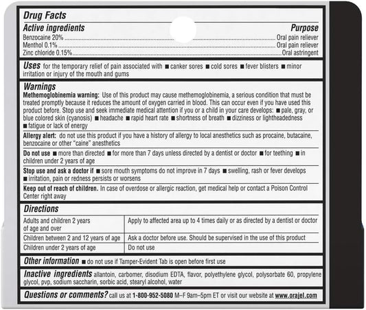 Orajel Mouth Sore Pain Relief Gel, 0.42 oz - Pack of 4 - Fast-Acting Relief for Oral DiscomfortVendor:OrajelRegular price $78.86 AUDRegular priceUnit price per