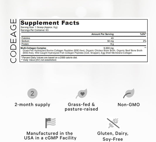 Codeage Multi Collagen Protein Powder Peptides - 2-Month Supply, Hydrolyzed Types I, II, III, V, X - Grass Fed All in One Super Bone Broth Supplement - Non-GMO - 20 oz