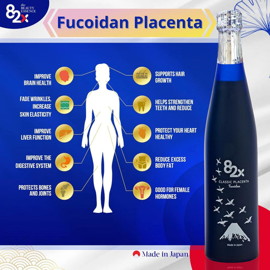 Liquid Collagen Placenta Drink with Marine Collagen Peptide - 450,000mg Placenta + 15,000mg Collagen - 82X Fucoidan Placenta Classic Supplement from Japan - Skin, Hair, Nail Support with 82 Fermented Plants