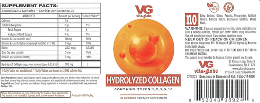 VITA GLOBE Collagen Gummies 200mg - Type I II III V & X, Vitamin for Healthy Skin Hair Nails, Beauty Support, Bone & Joint, 60 Count