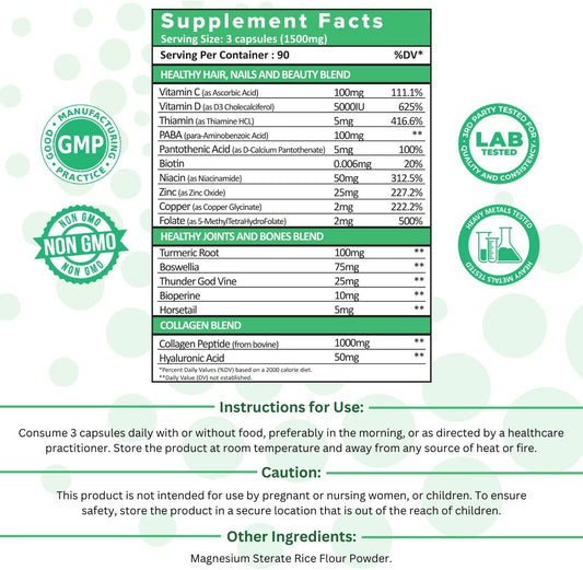 Beauty Boost: Premium Collagen, Biotin, and Vitamin Blend for Hair, Skin, and Nails - Clinically Tested Formula with Hyaluronic Acid and Zinc