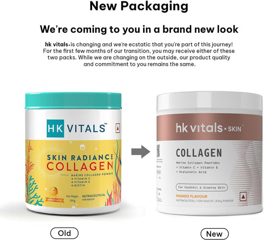 Marine Collagen Powder with Biotin, Vitamin C & E for Healthy Skin, Hair & Nails - Mango Flavor, 200g