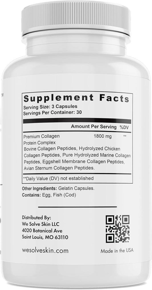 Premium Multi Collagen Capsules for Healthy Hair, Skin, Nails, Bones | WESOLVESKIN Pure Hydrolyzed Collagen Peptides with Type I, II, III, V, X | Gluten-Free (90 Capsules)