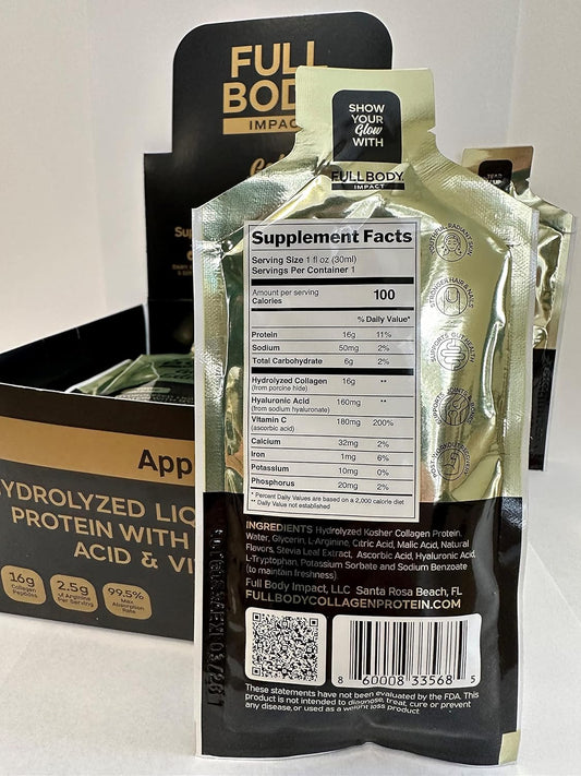 Gold Edition Apple Liquid Collagen Protein with Hyaluronic Acid & Vitamin C - 16,000mg Hydrolyzed Collagen Peptides - 24 Packets